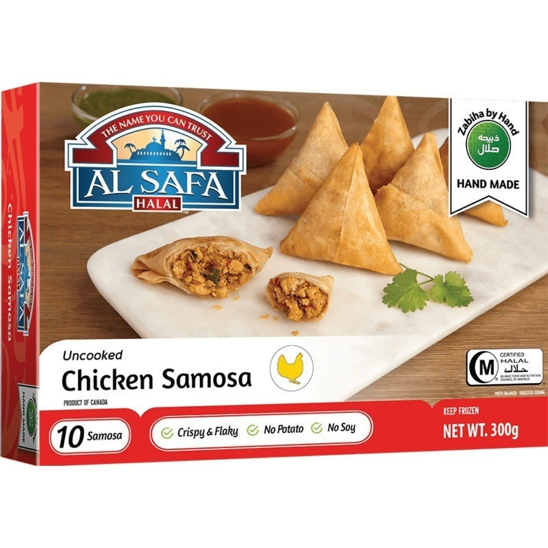Halal Chicken Samosa in line of samosa's at Al Safa Foods have are crispy & flakey, have no soy, no potato, and are hand made! It's the perfect appetizer & even better afternoon snack!! Available in Bulk Packs!
