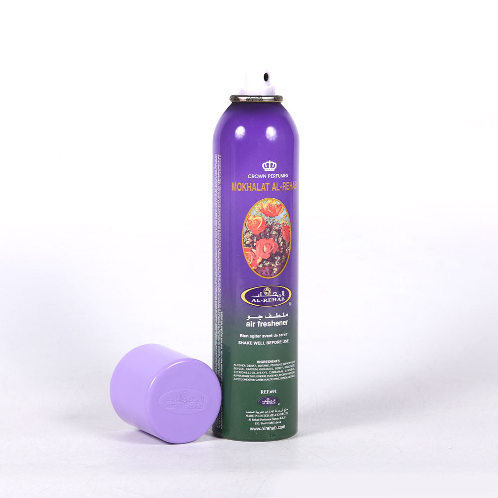 Mokhalat Al-Rehab Air Freshener – 300mLAir freshener has the fragrances of nature, it's quick freshening action eliminates unpleasant smells and fills the air you breathe in with a clean, cool and pleasant atmosphere all around you.