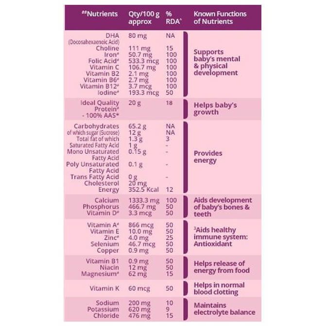Scientifically designed nutrition for pregnancy and lactation; Great new taste and now comes with no added sugar. It contains micronutrients known to support the healthy birth weight of the baby and Contains DHA and choline for brain development.