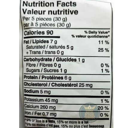 Milk, modified milk ingredients, citric acid, calcium chloride, potassium sorbate, modified food starch, xanthan gum & guar gum. Facts: Pre-cut cubes of the desired size for convenience. Cubes are frozen using Individually Quick.